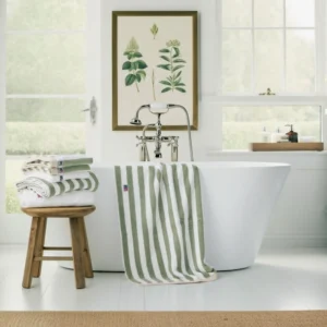 Block Striped Towel Vintage Green/White 50×70