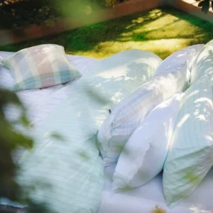 Blue/White Striped Organic Cotton Pillow Cover 50×50