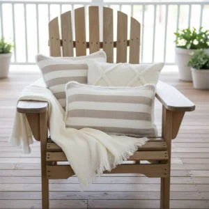 Kissenhülle Boho Streifen Fransen- beige-weiss -50×50