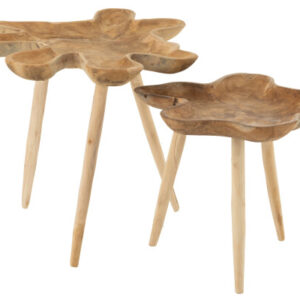 J-Line Beistelltische Splash Teck Holz Naturell, 2pcs