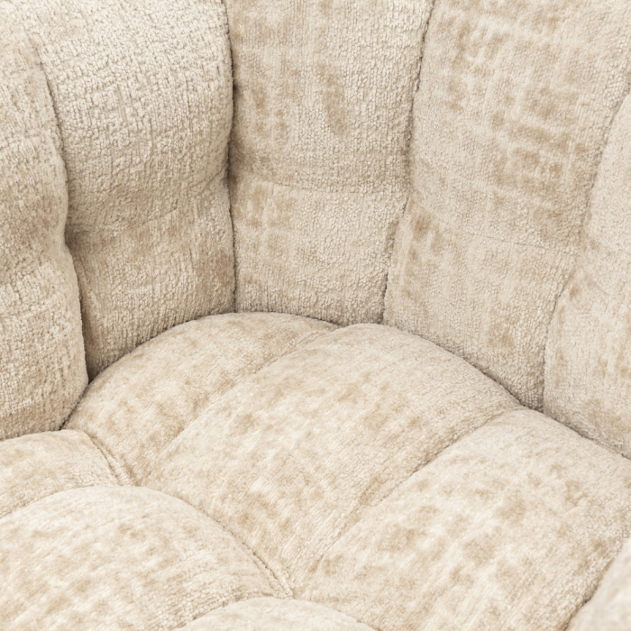 Dies ist der wunderbare Drehstuhl Arosa. Der Sessel steht auf einem unsichtbaren Sockel, wodurch er bis zum Boden zu reichen scheint. Dieser Fuß ermöglicht es dem Stuhl, sich um die eigene Achse zu drehen, was zum Sitzkomfort beiträgt
