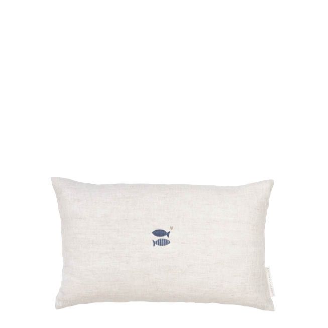 BASTION Cushion 30×50 Naturel/Fish in Blue 100% Linen