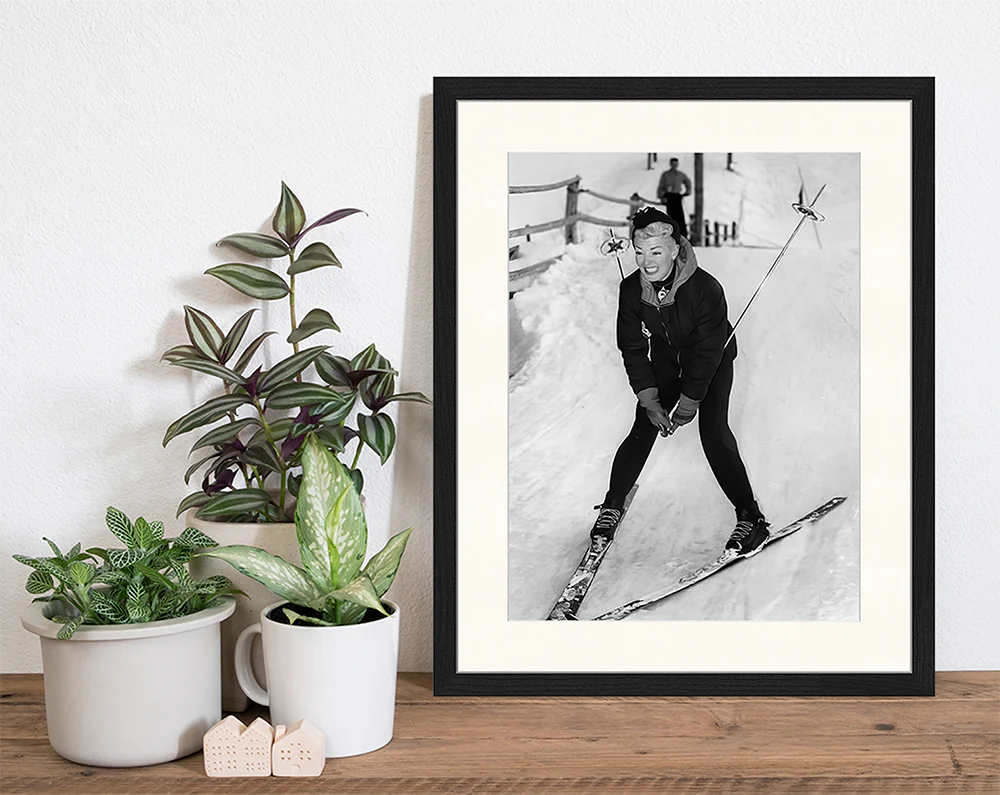 Hochwertiger Druck, Rahmen aus dünnem, schwarzem Buchenholz. Aufhängesystem inklusive.