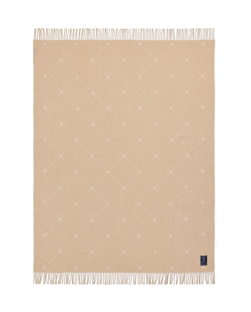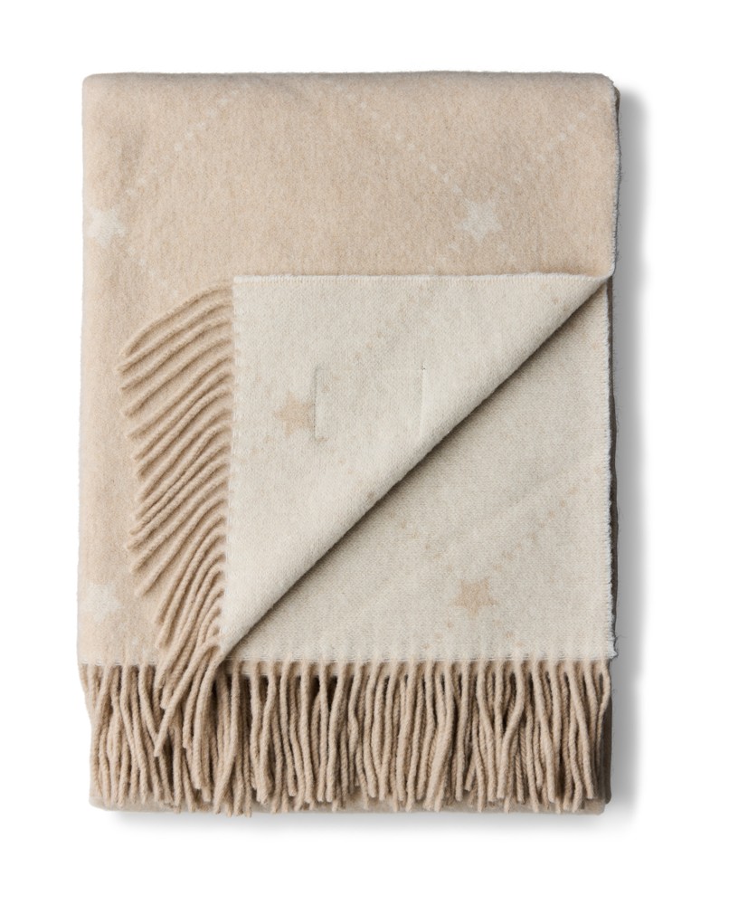 Hüllen Sie sich in diese weiche Decke aus recycelter Wolle. Das Modell trägt das charakteristische Sternmotiv von Lexington, hat weiche Fransen an den kurzen Seiten und ein gewebtes Logoetikett. In Italien hergestellt, mit GRS- und Oeko-Tex-Zertifizierung
