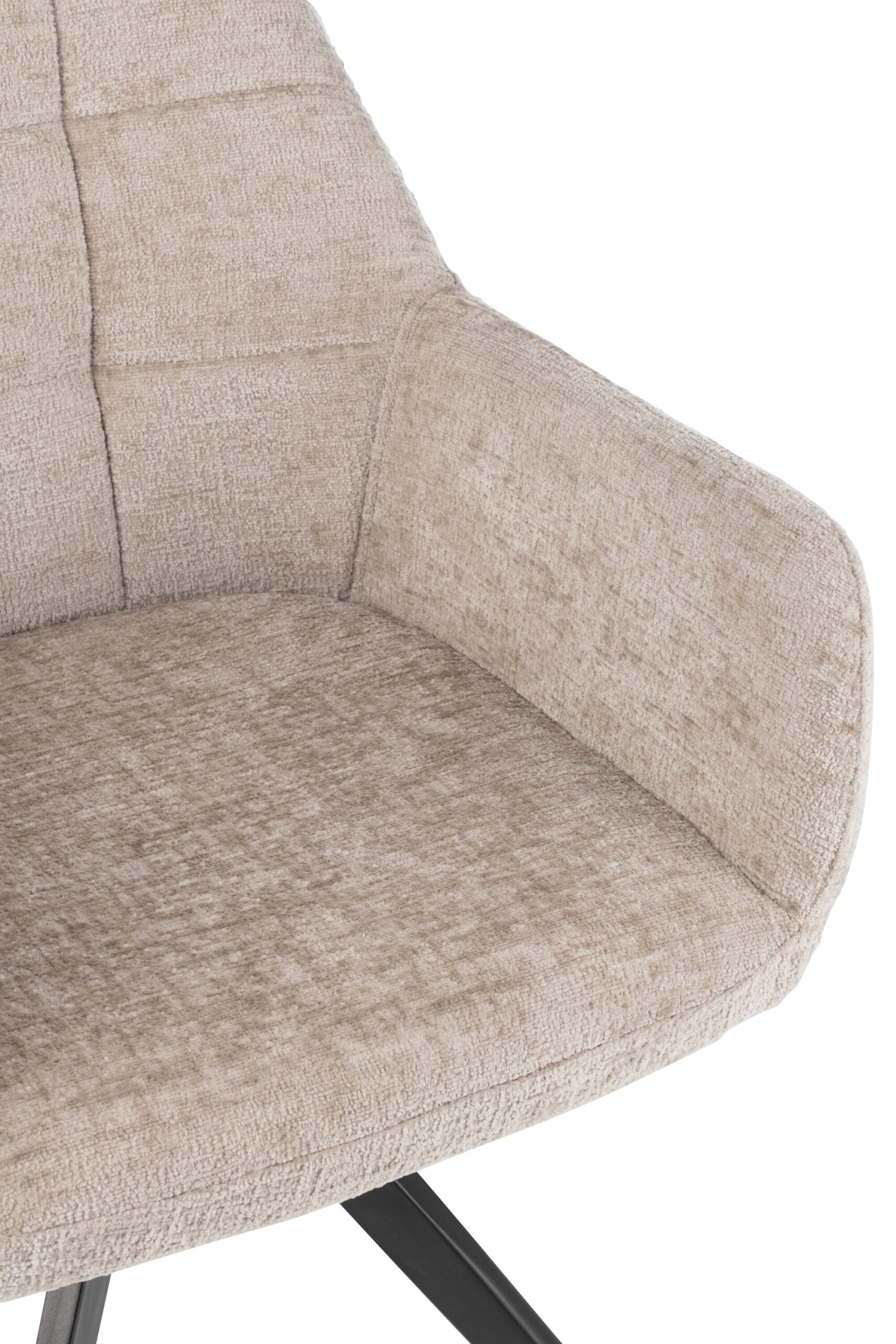 J-Line Jolipa drehbarer Esszimmerstuhl mit schwarzen Metallbeinen.