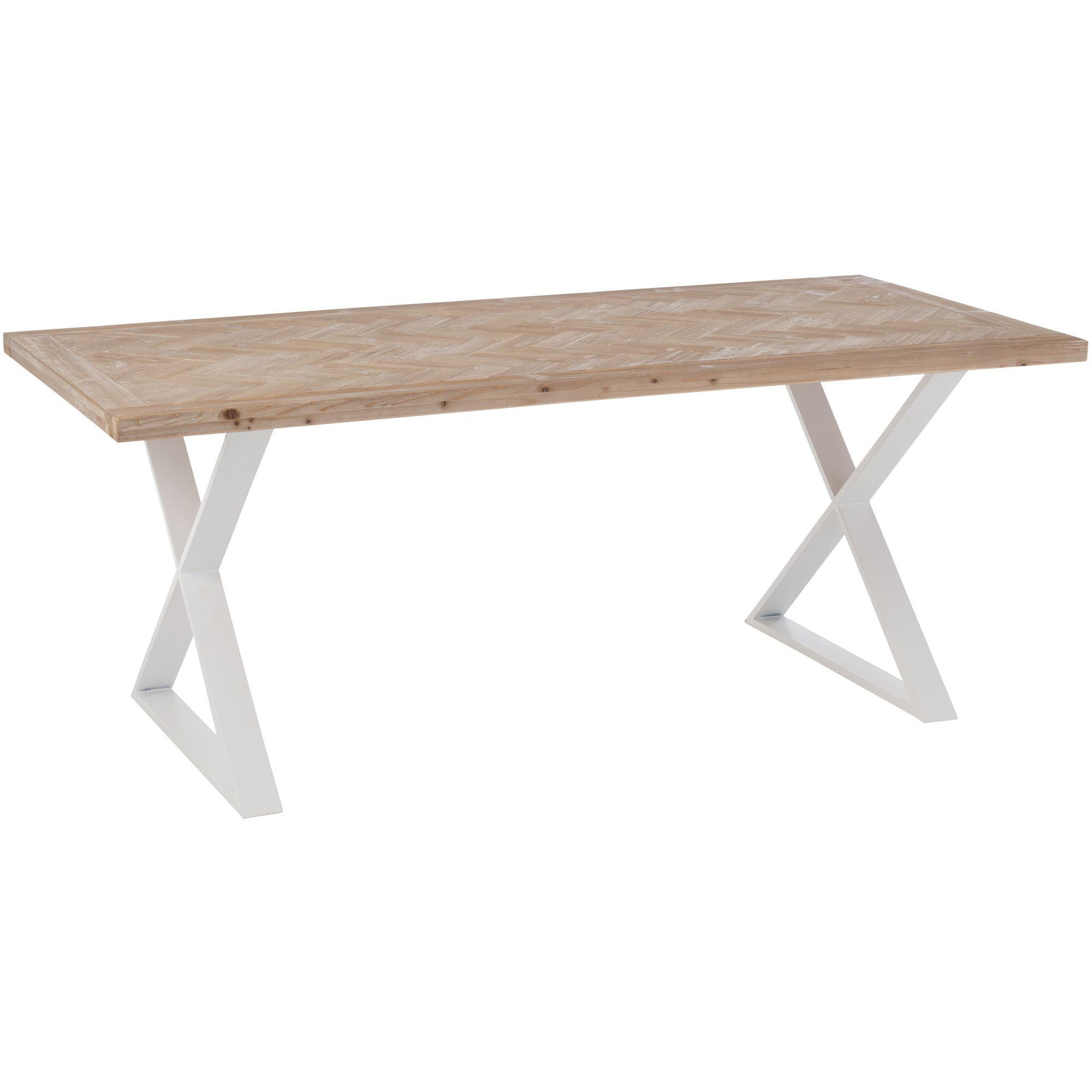 Schöner Esstisch mit ZigZag Muster in Natur-Weiss von J-Line Jolipa. Wahlweise mit weissen oder schwarzen Tischbeinen erhältlich.