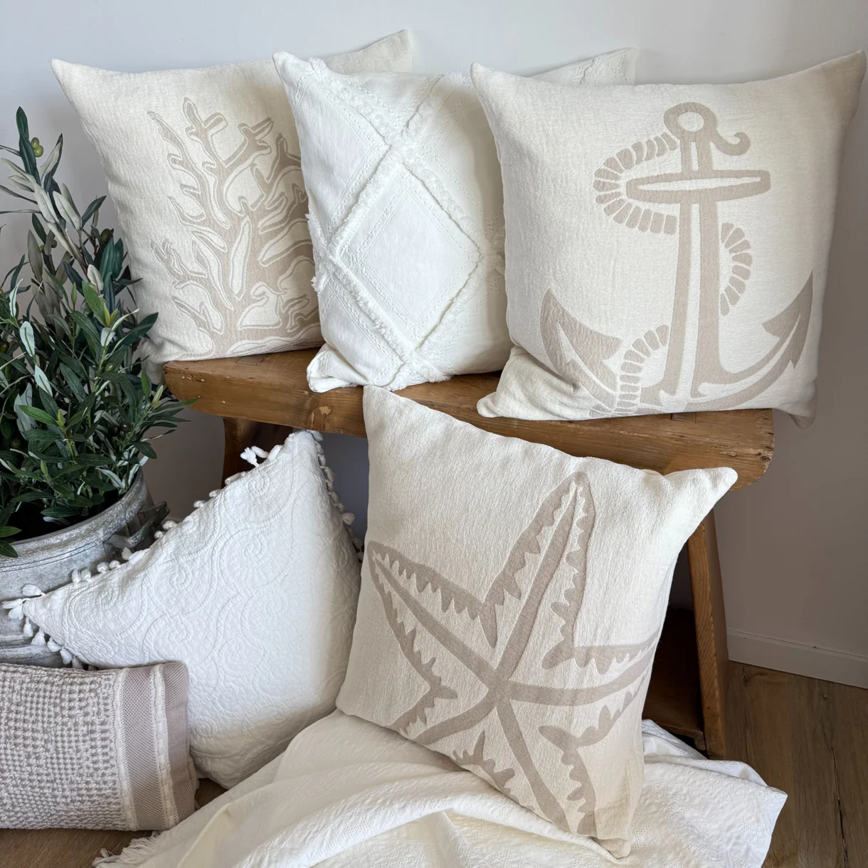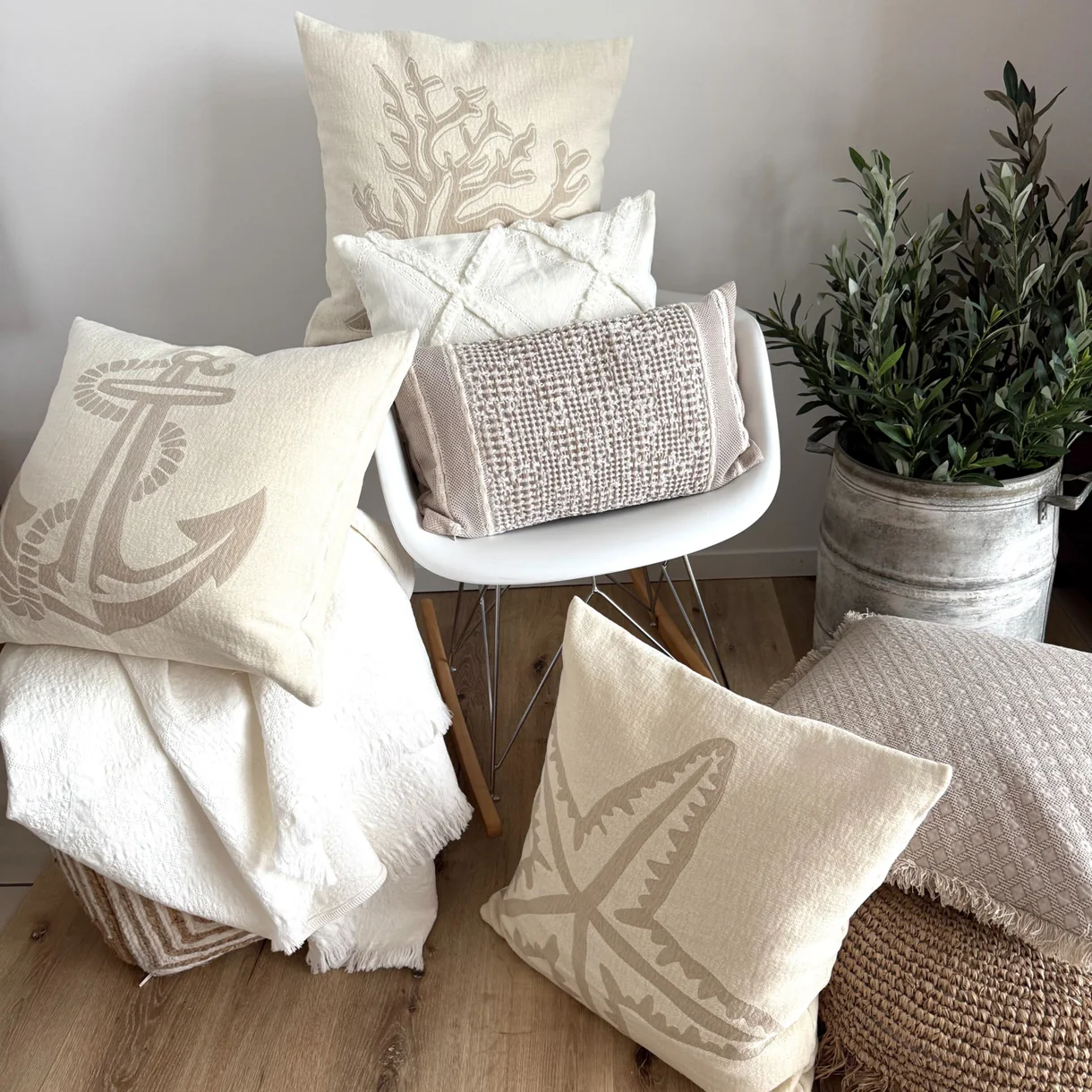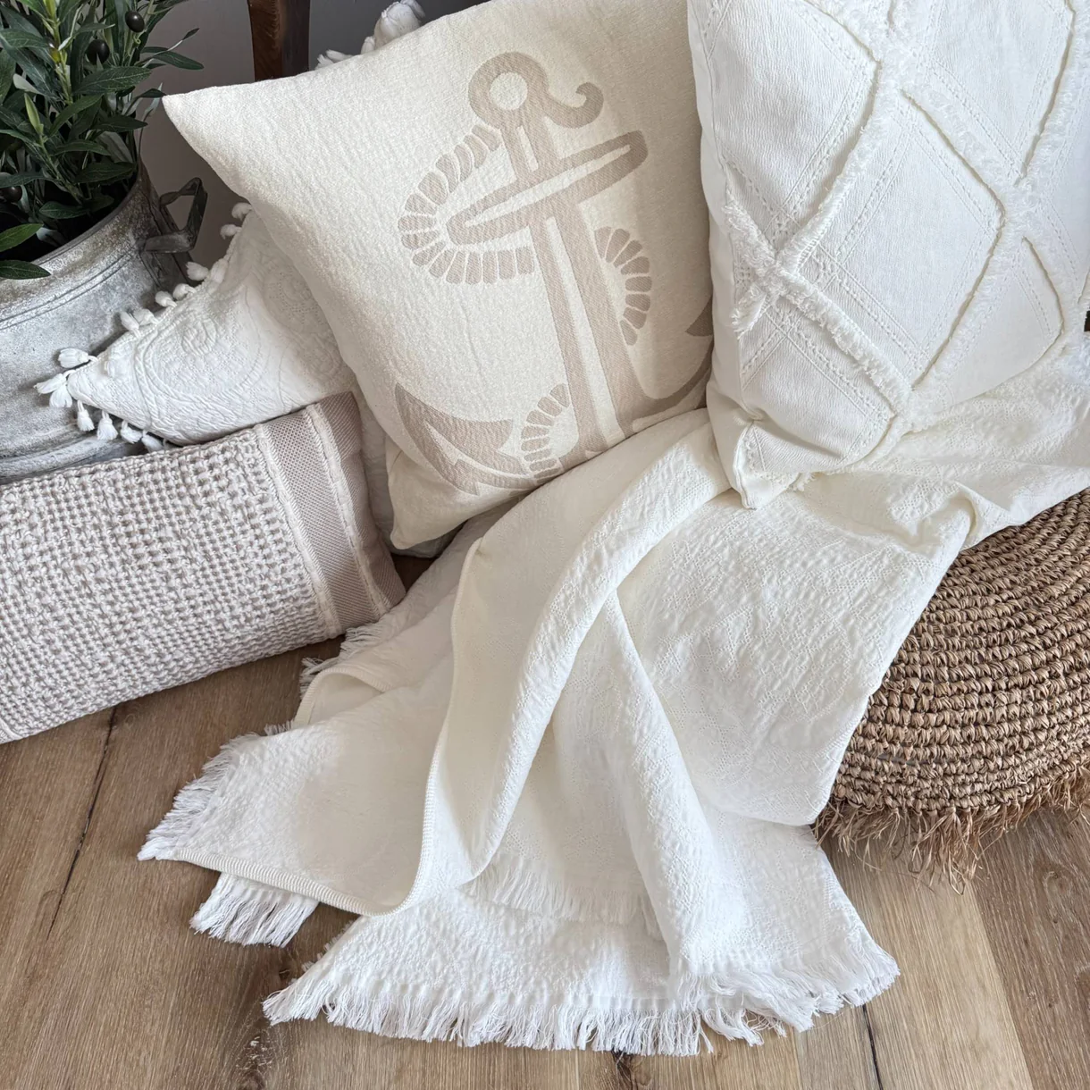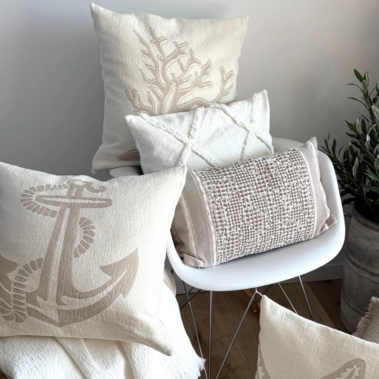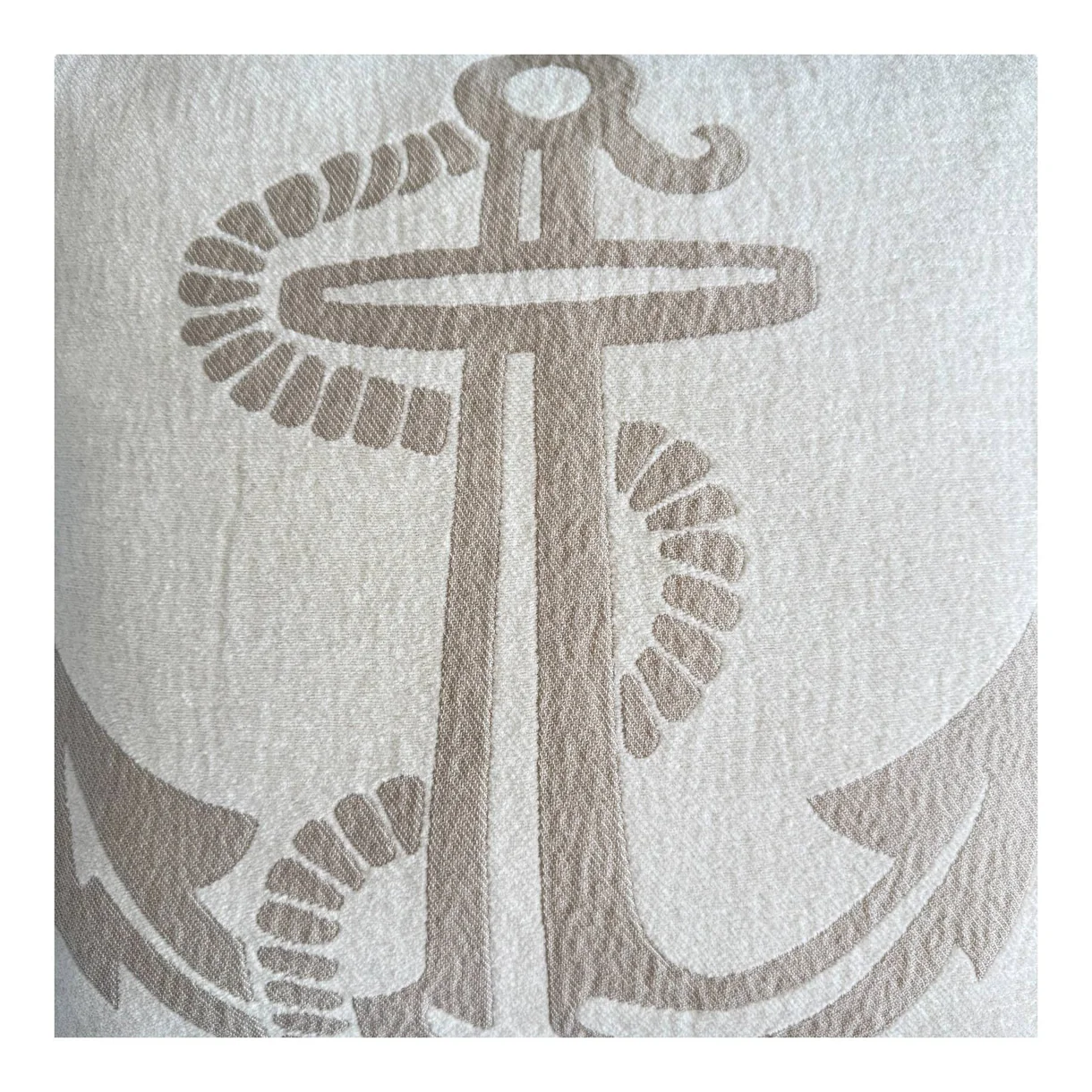 Entdecken Sie die stilvolle Kissenhülle Chenille Anker taupe – ein luxuriöses Wohnaccessoire, das Ihrem Zuhause einen besonderen Akzent verleiht. Gefertigt aus edlem super weichem Chenille (100% Baumwolle), besticht die Kissenhülle durch einen zeitlosen Offwhite-Ton und das taupefarbene Ankermotiv, eines unserer neuen Designs. Dieses Design bietet nicht nur den mediterranen Charme, sondern auch eine kuschelig weiche Haptik dank der hochwertigen Materialqualität.