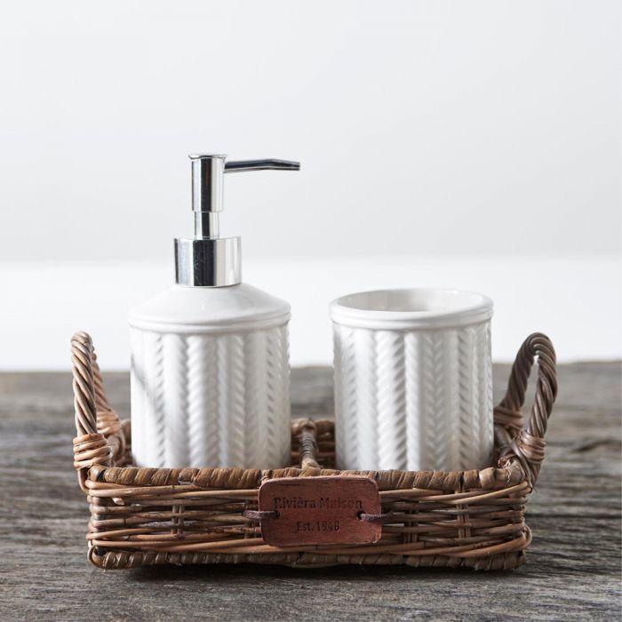Dieses Soap Tray besteht aus Rustic Rattan und eignet sich optimal, um einen Seifenspender und einen Becher hineinzustellen. Es macht in jedem Badezimmer eine gute Figur und sorgt dafür, dass der Spender und der Becher ansprechend nebeneinander präsentiert werden können.