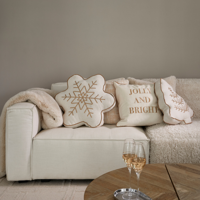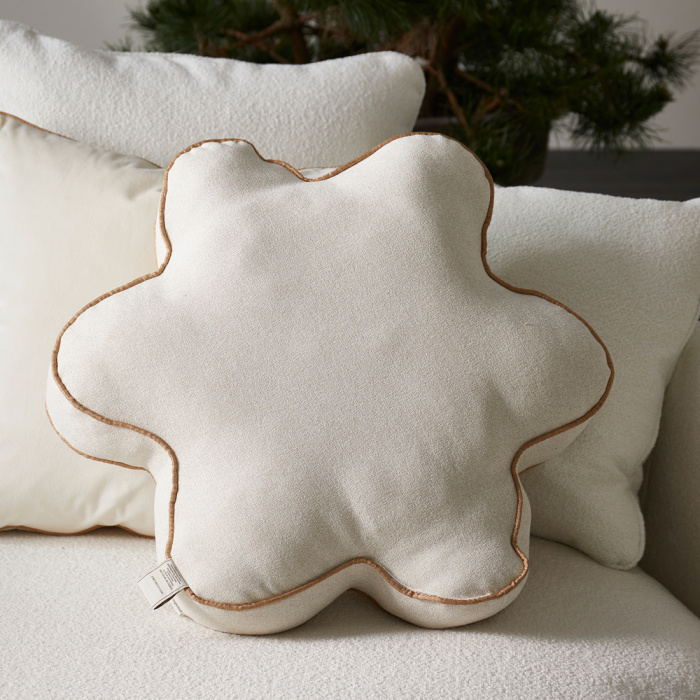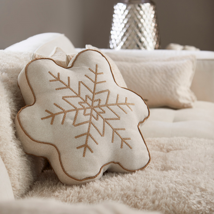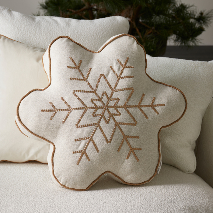 Verleihe deinem Interieur einen festlichen Touch mit diesem Kissen in Form einer Weihnachtsflocke. Das robuste Kissen ist aus einem reichhaltigen Stoff gefertigt und mit raffinierten roségoldenen Details versehen. Das dekorative Kissen verleiht deinem Zuhause einen Hauch von winterlichem Charme und Luxus – ideal, um deine Weihnachtsdekoration zu vervollständigen.